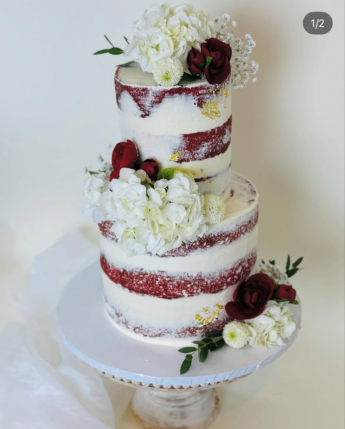 Such as fondant decals, edible images, fresh flowers, custom cake toppers, macarons, added candies, fresh fruit purée, edible gold foil, airbrush, chef assembly on-site, deliveries, and last-minute changes.